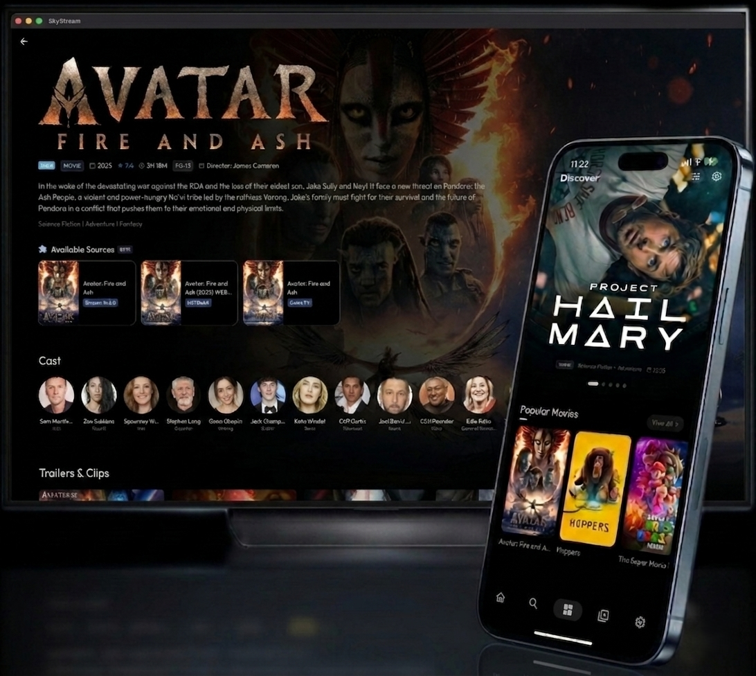 SkyStream is a modern, cross-platform media client inspired by CloudStream — rebuilt from scratch with Flutter. Install JavaScript extensions to unlock any source. No ads. No subscriptions. No strings.
